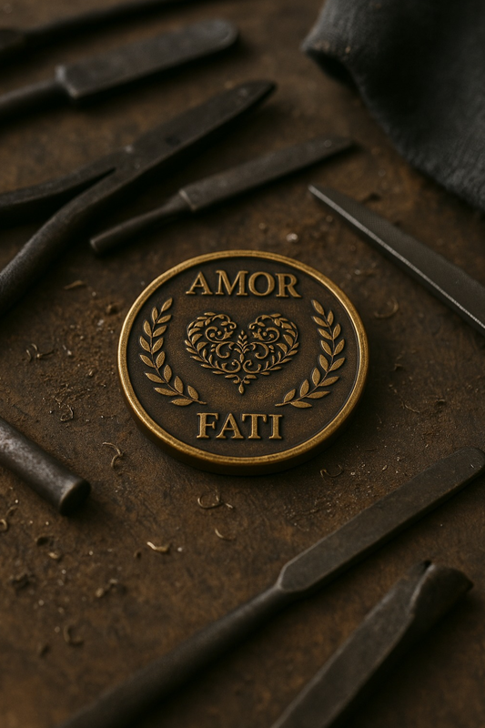 Amor Fati Coin | Symbol of Fate, Acceptance & Inner Strength | Handmade in 925 Sterling Silver, 24K Gold Plated, Bronze, Copper