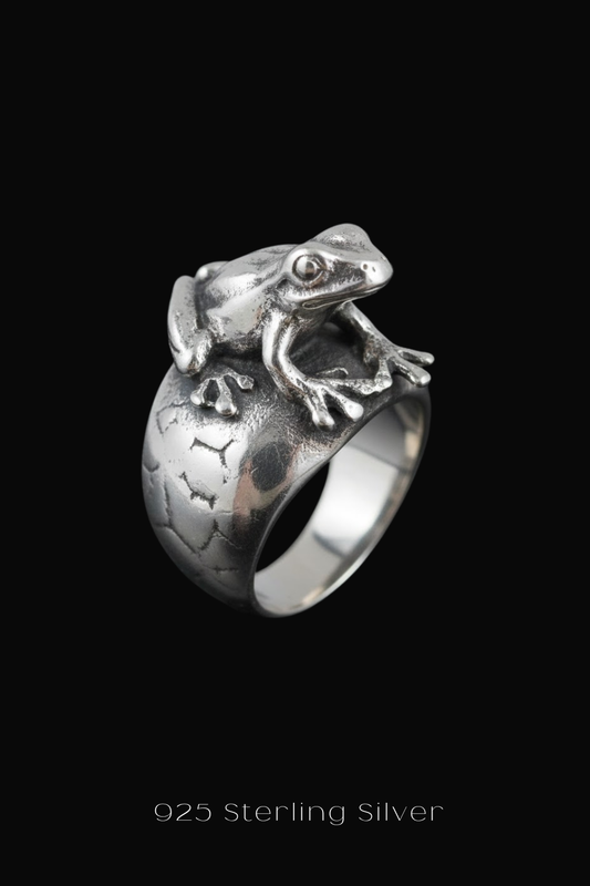 Frog Ring | Symbol of Transformation & Natural Harmony | Handmade in 925 Sterling Silver, 24K Gold Plated, Bronze, Copper