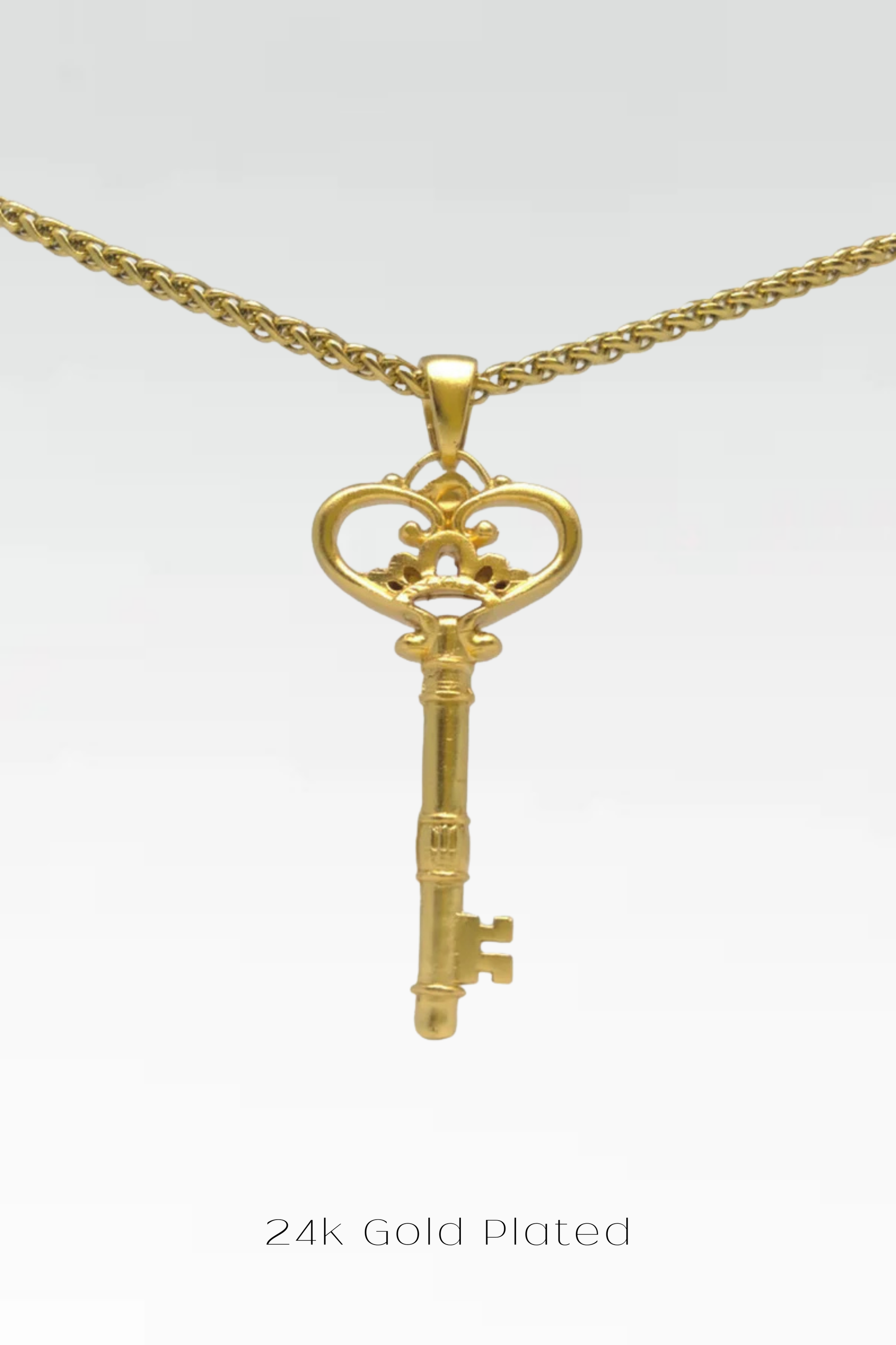 Key Necklace – Handmade Symbolic Pendant in Bronze, Sterling Silver, Copper & 24K Gold Plated | Jewelry of New Beginnings, Unisex Gift