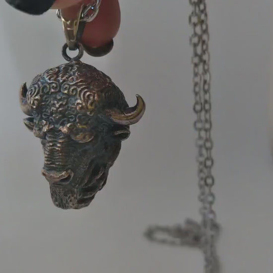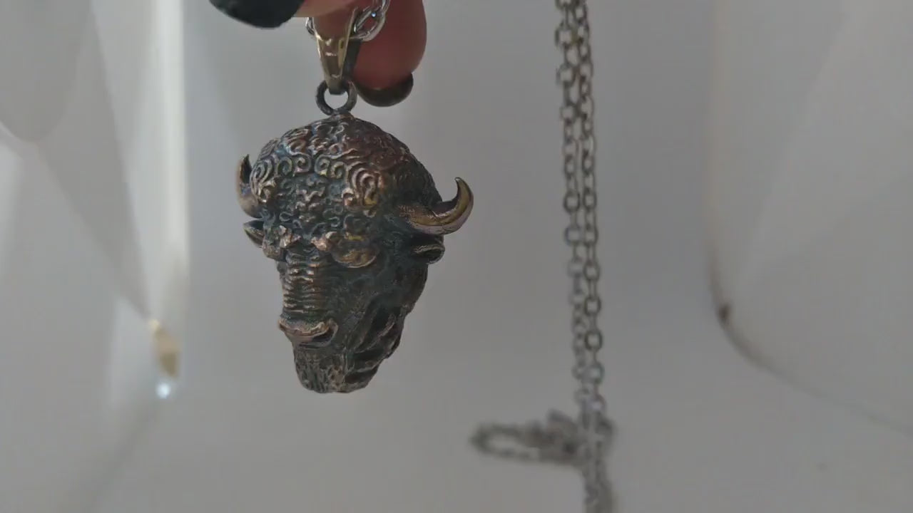 Buffalo Necklace | Symbol of Power & Grounded Strength | Handmade in 925 Sterling Silver, 24K Gold Plated, Bronze